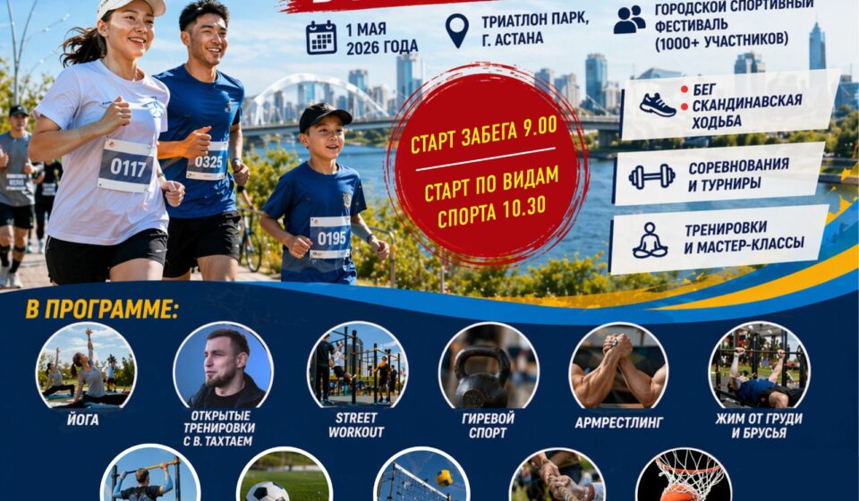 В Астане 1 мая пройдет масштабный спортивный фестиваль, приуроченный ко Дню единства народа Казахстана и республиканской экологической акции «Таза Қазақстан». Мероприятие посвятят открытию летнего сезона, а площадкой станет обновленная набережная Триатлон парка.