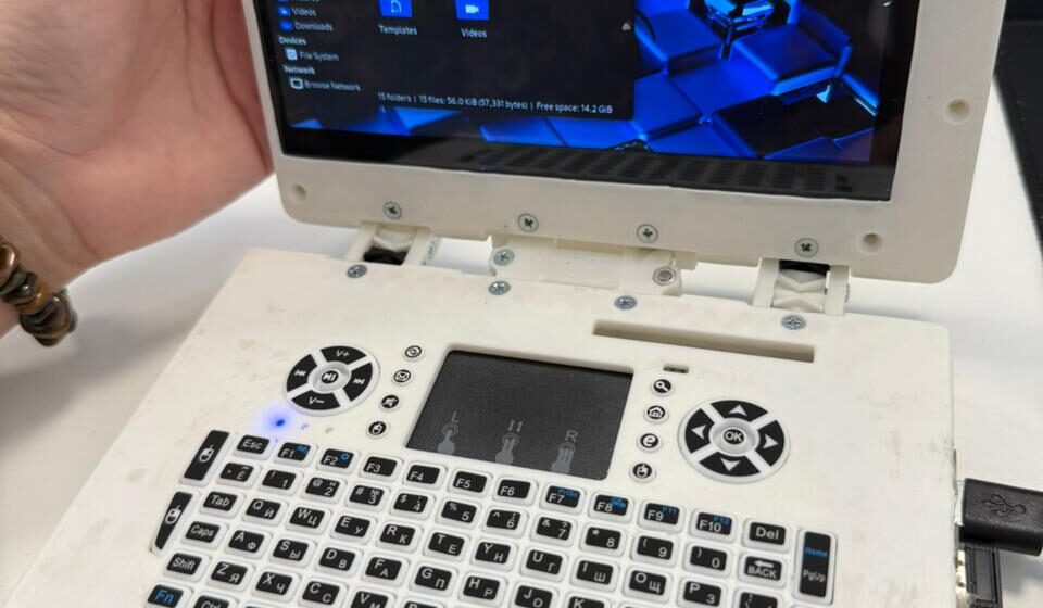 После печати корпуса внутренние компоненты установили и закрепили внутри, и в результате был собран полноценный мини-ноутбук. На реализацию проекта ушло около двух месяцев.