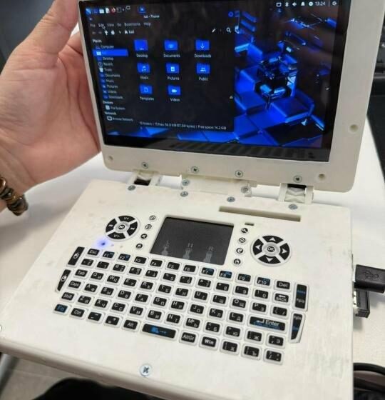 На следующем этапе были определены размеры будущего устройства и создана его 3D-модель. Затем корпус напечатали на 3D-принтере и установили внутрь все необходимые компоненты. В результате получился полноценный мини-ноутбук.