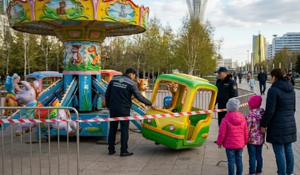 В Астане остановили карусель после падения кабины