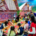 Технологическое оформление продолжается в центральной зоне площадки. Там установлен масштабный LED-экран с визуальным контентом, созданным искусственным интеллектом. Экран переносит посетителей в традиционный казахский аул, передавая ощущение весеннего обновления и уюта.