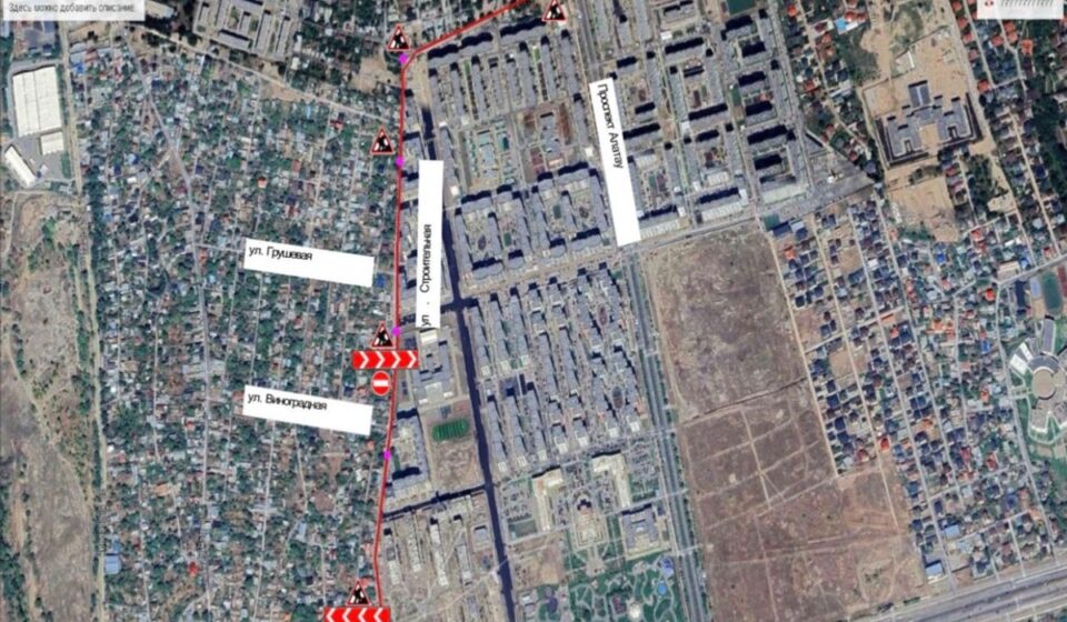 В Алматы временно ограничат движение автотранспорта на улице Строительная и в районе пересечения проспекта Абая с улицей Строительная (дублер) в Наурызбайском районе. Ограничения будут действовать поэтапно с 30 марта по 10 июня 2026 года в связи со строительно-монтажными работами.